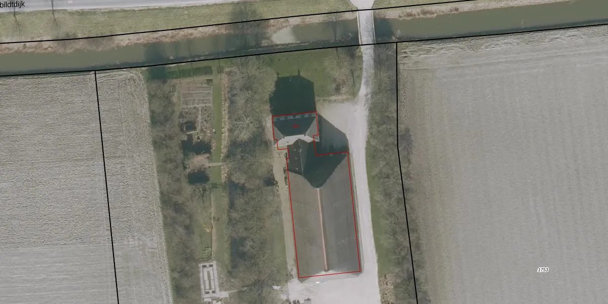 Het perceel waarop Oudebildtdijk 201 staat heeft een oppervlakte van 1,5 ha. Dit is een zeer groot perceel. De perceeloppervlakte wordt geregistreerd door het Kadaster. Gedetailleerde informatie over de maten van dit perceel kunt u vinden in het rapport Kadastrale kaart met maatvoering van Oudebildtdijk 201.