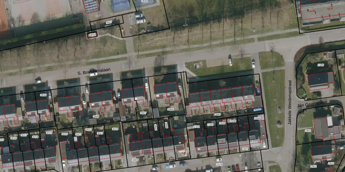 Het perceel waarop S. Brandsmalaan 13 staat heeft een oppervlakte van 481 m². Dit is een groot perceel. De perceeloppervlakte wordt geregistreerd door het Kadaster. Gedetailleerde informatie over de maten van dit perceel kunt u vinden in het rapport Kadastrale kaart met maatvoering van S. Brandsmalaan 13.