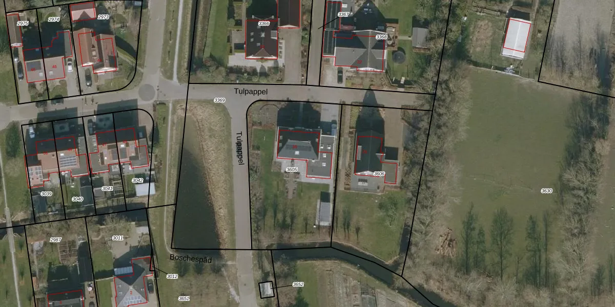 Tulpappel 18 is gelegen op kadastraal perceel ANA02A3605. Deze kadastrale aanduiding is uniek en wordt gebruikt door het Kadaster om eigendomsrechten en andere zakelijke rechten vast te leggen. Het perceel maakt onderdeel uit van de kadastrale gemeente Sint Anna Parochie.