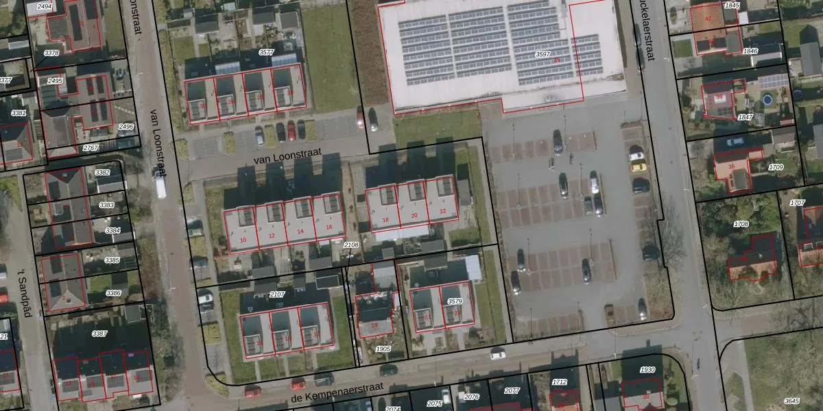 Het perceel waarop van Loonstraat 20 staat heeft een oppervlakte van 7418 m². Dit is een zeer groot perceel. De perceeloppervlakte wordt geregistreerd door het Kadaster. Gedetailleerde informatie over de maten van dit perceel kunt u vinden in het rapport Kadastrale kaart met maatvoering van van Loonstraat 20.