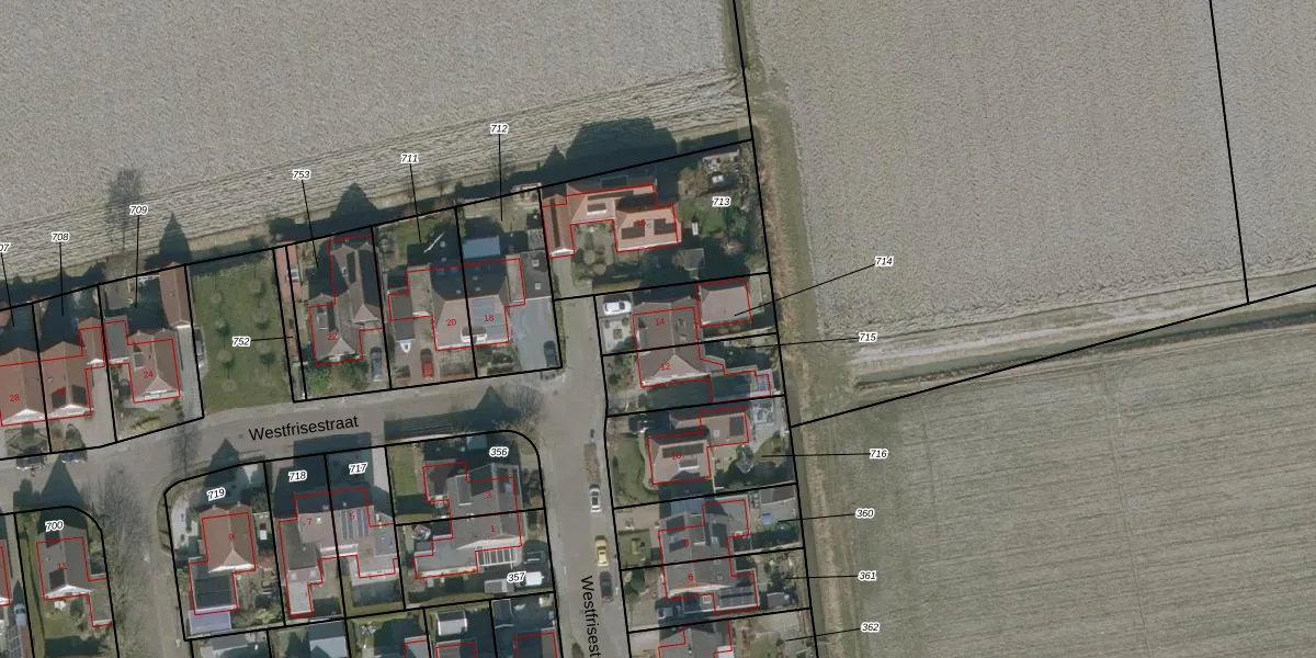 Westfrisestraat 14 is gelegen op kadastraal perceel ANA02F714. Deze kadastrale aanduiding is uniek en wordt gebruikt door het Kadaster om eigendomsrechten en andere zakelijke rechten vast te leggen. Het perceel maakt onderdeel uit van de kadastrale gemeente Sint Anna Parochie.