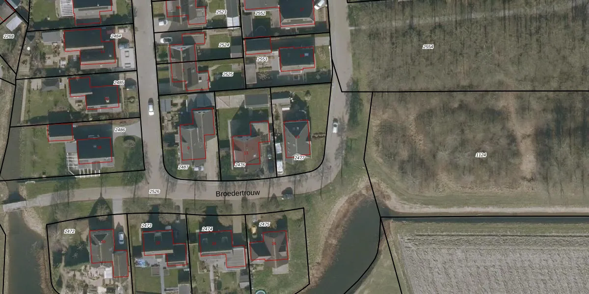 Gebruik de zoekbalk of klik op een perceel voor informatie over de adressen binnen dit perceel.