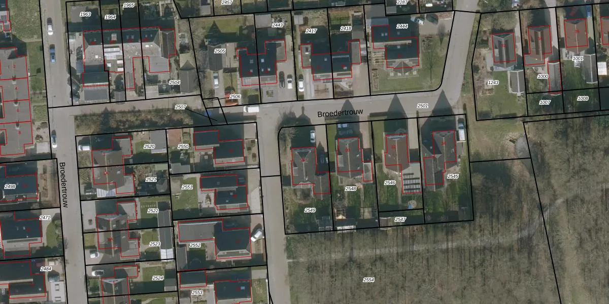 Het perceel waarop Broedertrouw 28 staat heeft een oppervlakte van 560 m². Dit is een groot perceel. De perceeloppervlakte wordt geregistreerd door het Kadaster. Gedetailleerde informatie over de maten van dit perceel kunt u vinden in het rapport Kadastrale kaart met maatvoering van Broedertrouw 28.