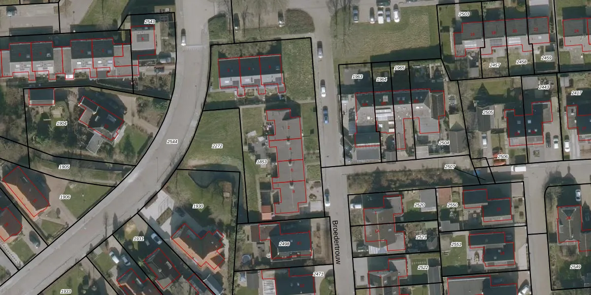 Het perceel waarop Broedertrouw 4 staat heeft een oppervlakte van 1795 m². Dit is een zeer groot perceel. De perceeloppervlakte wordt geregistreerd door het Kadaster. Gedetailleerde informatie over de maten van dit perceel kunt u vinden in het rapport Kadastrale kaart met maatvoering van Broedertrouw 4.