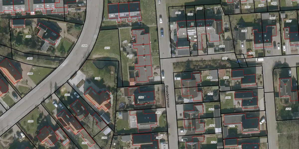 Het perceel waarop Broedertrouw 8 staat heeft een oppervlakte van 1795 m². Dit is een zeer groot perceel. De perceeloppervlakte wordt geregistreerd door het Kadaster. Gedetailleerde informatie over de maten van dit perceel kunt u vinden in het rapport Kadastrale kaart met maatvoering van Broedertrouw 8.