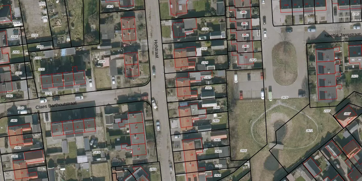 Gebruik de zoekbalk of klik op een perceel voor informatie over de adressen binnen dit perceel.