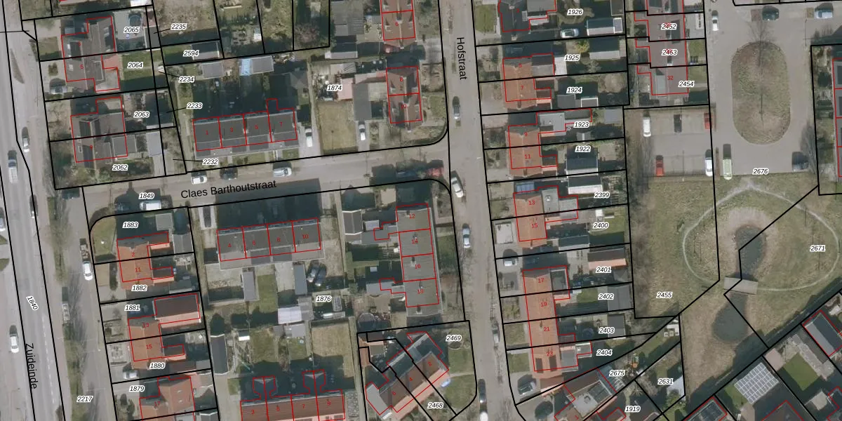 Hofstraat 12 is gelegen op kadastraal perceel JCB00A1876. Deze kadastrale aanduiding is uniek en wordt gebruikt door het Kadaster om eigendomsrechten en andere zakelijke rechten vast te leggen. Het perceel maakt onderdeel uit van de kadastrale gemeente Sint Jacobi Parochie.