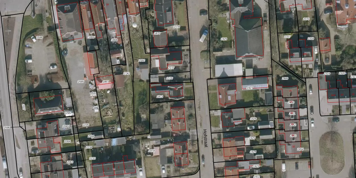 Gebruik de zoekbalk of klik op een perceel voor informatie over de adressen binnen dit perceel.
