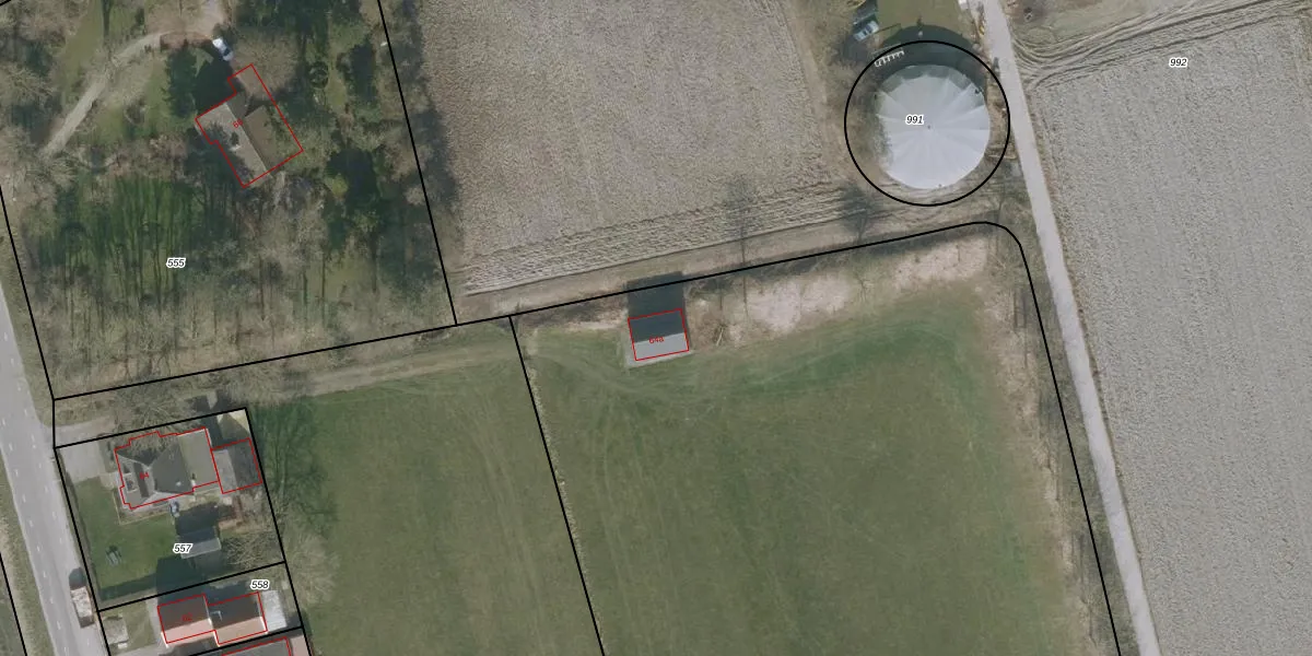 Het adres ligt op het perceel JCB00-D-552, dat zich in de kadastrale gemeente Sint Jacobi Parochie bevindt. De oppervlakte van het perceel is 1,3 ha. Dat is groter dan gemiddeld in Sint Jacobi Parochie, waar de gemiddelde perceeloppervlakte op 1,0 ha ligt. Het grootste perceel in de kadastrale gemeente is 29,5 ha. Het kleinste perceel heeft een oppervlakte van 1 m². Op het perceel bevinden zich geen andere adressen. De huidige grenzen van het perceel zijn digitaal in de Basisregistratie Kadaster (BRK) geregistreerd op 15-01-1998.