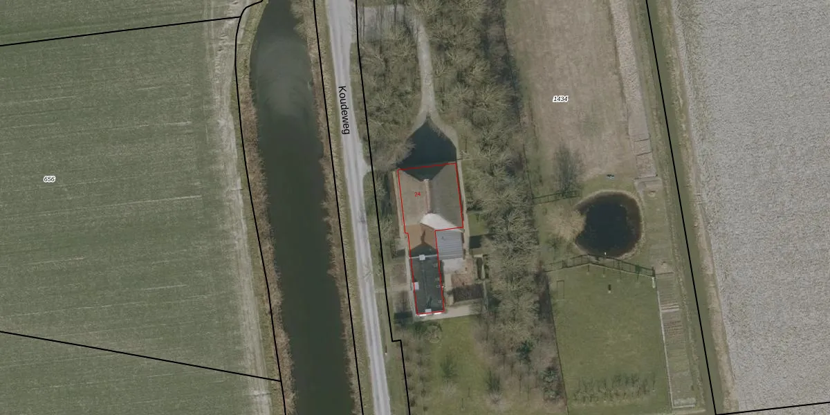 Koudeweg 24 is gelegen op kadastraal perceel ANA02F1434. Deze kadastrale aanduiding is uniek en wordt gebruikt door het Kadaster om eigendomsrechten en andere zakelijke rechten vast te leggen. Het perceel maakt onderdeel uit van de kadastrale gemeente Sint Anna Parochie.
