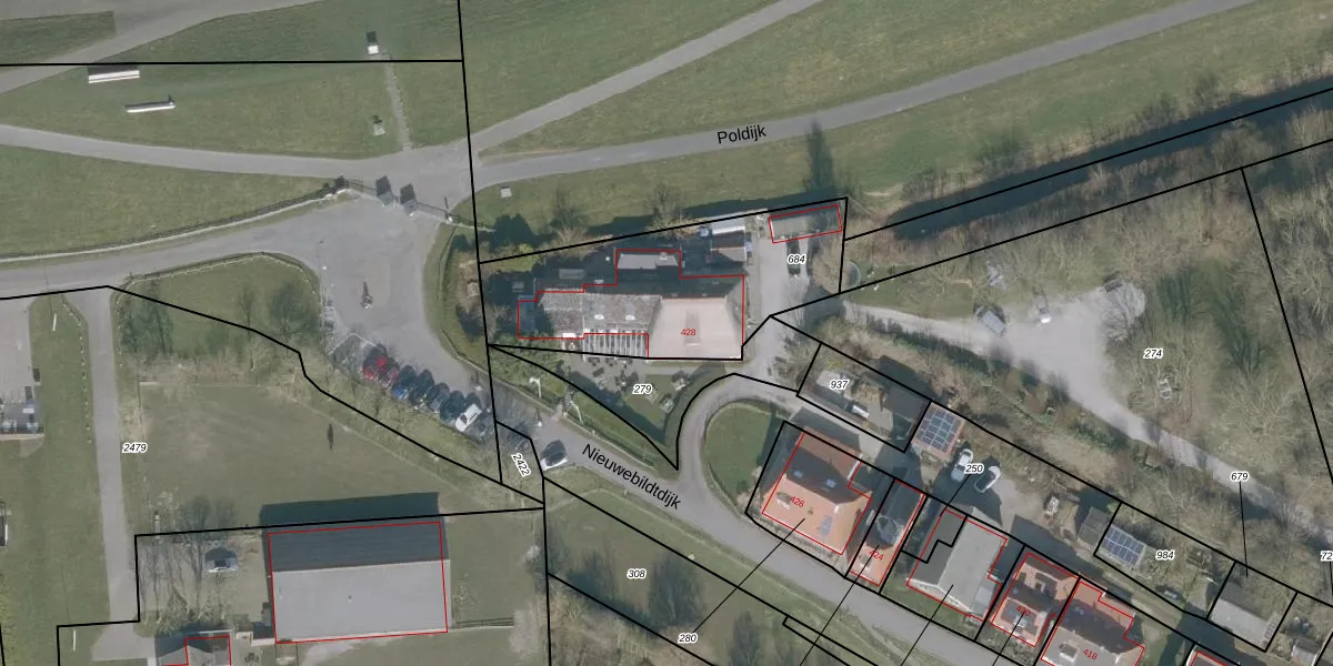 Het perceel waarop Nieuwebildtdijk 428 staat heeft een oppervlakte van 910 m². Dit is een groot perceel. De perceeloppervlakte wordt geregistreerd door het Kadaster. Gedetailleerde informatie over de maten van dit perceel kunt u vinden in het rapport Kadastrale kaart met maatvoering van Nieuwebildtdijk 428.