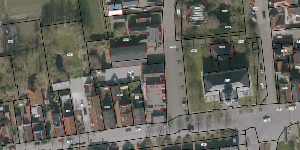 Het perceel waarop Noordeinde 1-G staat heeft een oppervlakte van 1063 m². Dit is een zeer groot perceel. De perceeloppervlakte wordt geregistreerd door het Kadaster. Gedetailleerde informatie over de maten van dit perceel kunt u vinden in het rapport Kadastrale kaart met maatvoering van Noordeinde 1-G.