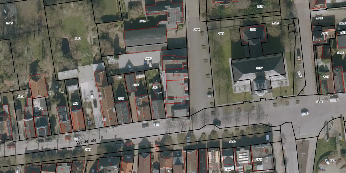Het perceel waarop Noordeinde 1-I staat heeft een oppervlakte van 1063 m². Dit is een zeer groot perceel. De perceeloppervlakte wordt geregistreerd door het Kadaster. Gedetailleerde informatie over de maten van dit perceel kunt u vinden in het rapport Kadastrale kaart met maatvoering van Noordeinde 1-I.
