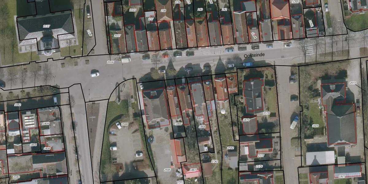 Het perceel waarop Oosteinde 14 staat heeft een oppervlakte van 676 m². Dit is een groot perceel. De perceeloppervlakte wordt geregistreerd door het Kadaster. Gedetailleerde informatie over de maten van dit perceel kunt u vinden in het rapport Kadastrale kaart met maatvoering van Oosteinde 14.