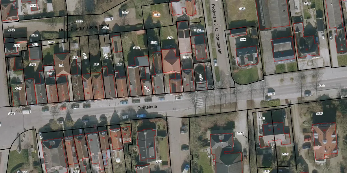 Het perceel waarop Oosteinde 27 staat heeft een oppervlakte van 409 m². Dit is een groot perceel. De perceeloppervlakte wordt geregistreerd door het Kadaster. Gedetailleerde informatie over de maten van dit perceel kunt u vinden in het rapport Kadastrale kaart met maatvoering van Oosteinde 27.