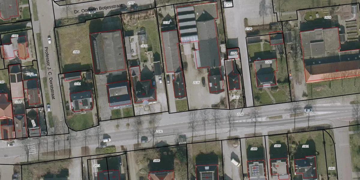 Gebruik de zoekbalk of klik op een perceel voor informatie over de adressen binnen dit perceel.