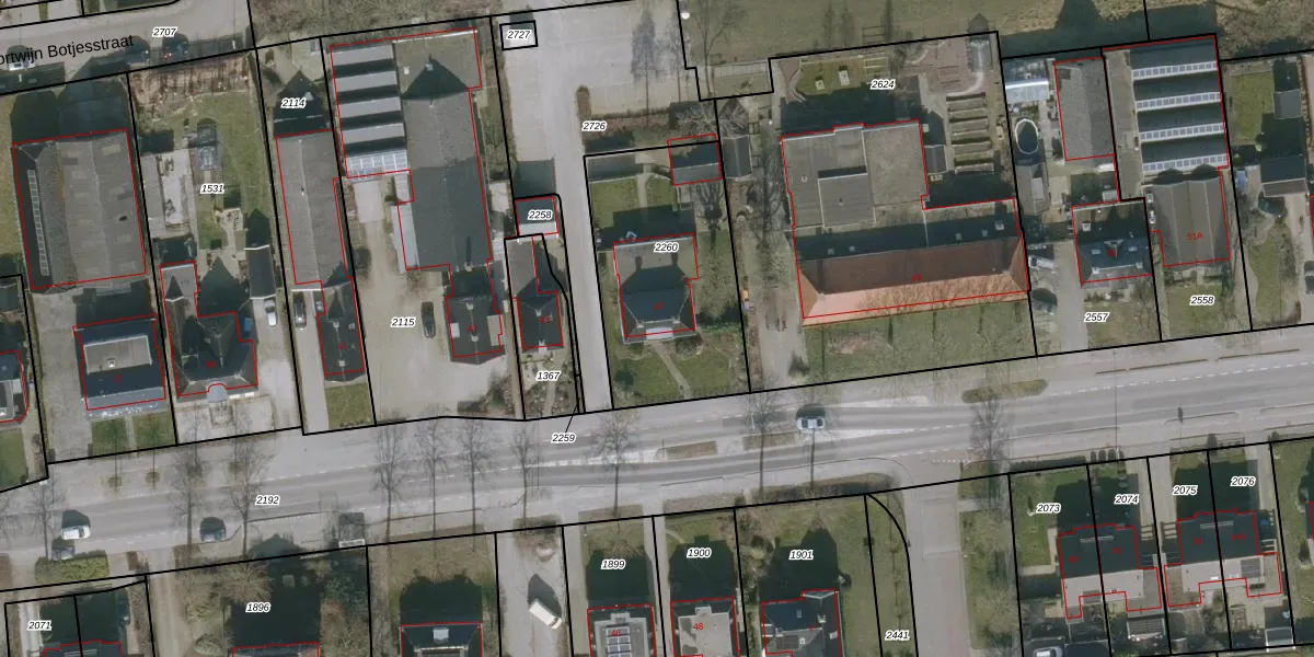 Gebruik de zoekbalk of klik op een perceel voor informatie over de adressen binnen dit perceel.
