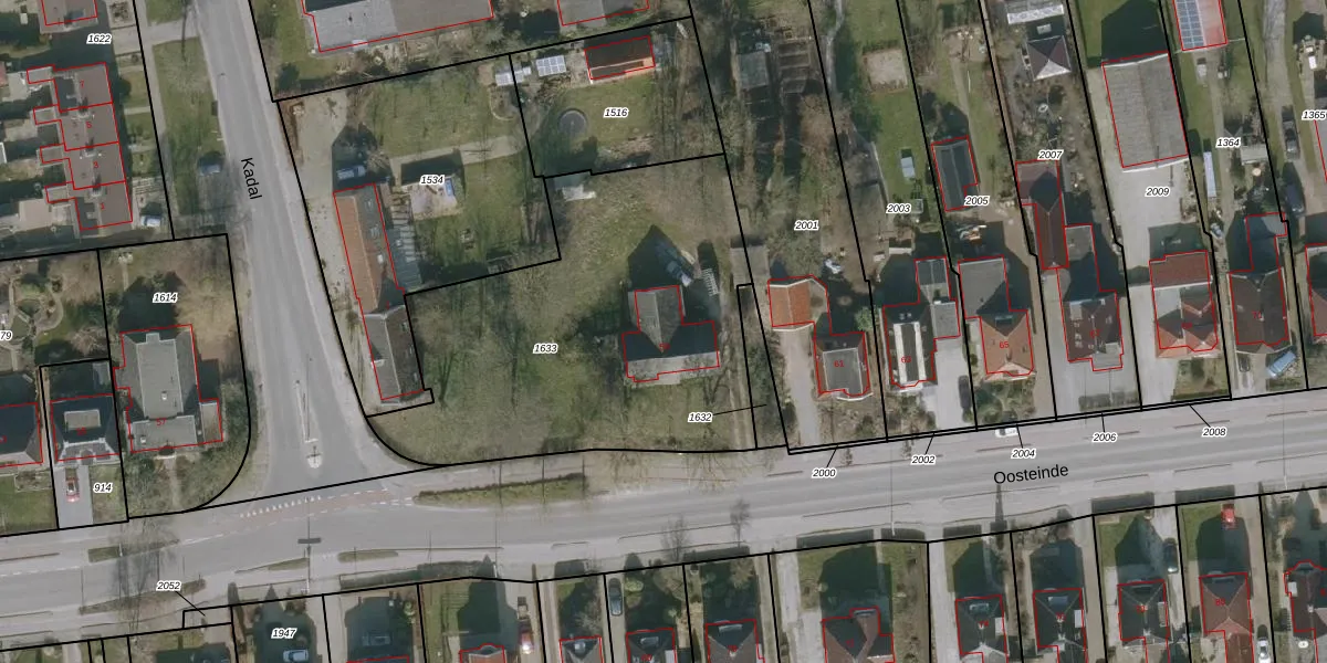 Het perceel waarop Oosteinde 59 staat heeft een oppervlakte van 1850 m². Dit is een zeer groot perceel. De perceeloppervlakte wordt geregistreerd door het Kadaster. Gedetailleerde informatie over de maten van dit perceel kunt u vinden in het rapport Kadastrale kaart met maatvoering van Oosteinde 59.