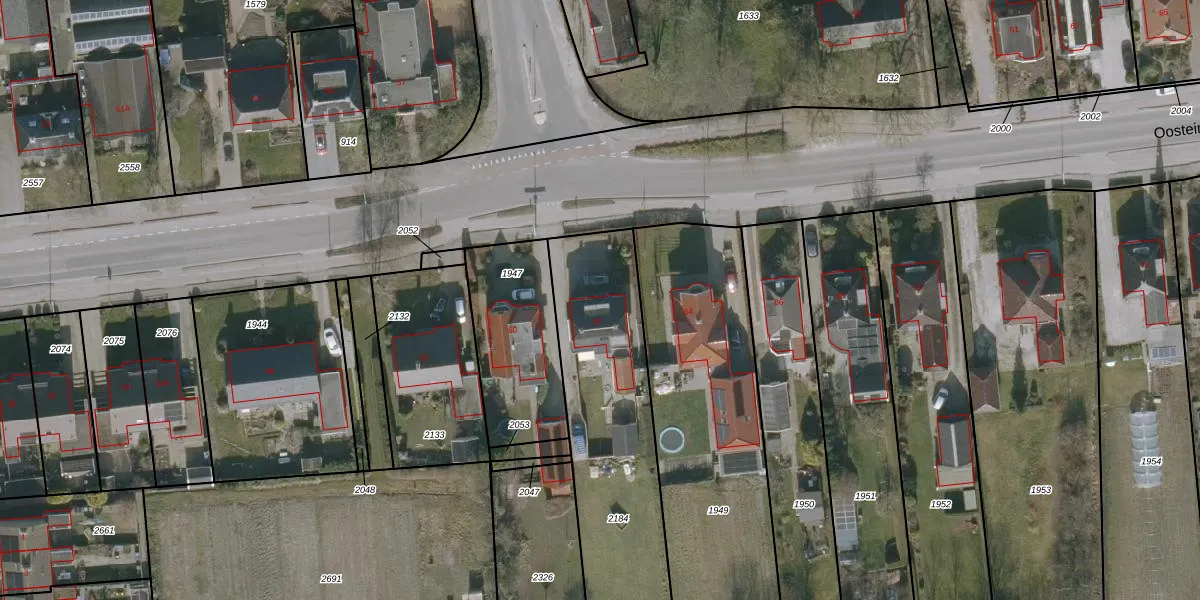 Het perceel waarop Oosteinde 62 staat heeft een oppervlakte van 1044 m². Dit is een zeer groot perceel. De perceeloppervlakte wordt geregistreerd door het Kadaster. Gedetailleerde informatie over de maten van dit perceel kunt u vinden in het rapport Kadastrale kaart met maatvoering van Oosteinde 62.