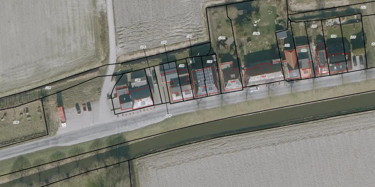 Gebruik de zoekbalk of klik op een perceel voor informatie over de adressen binnen dit perceel.