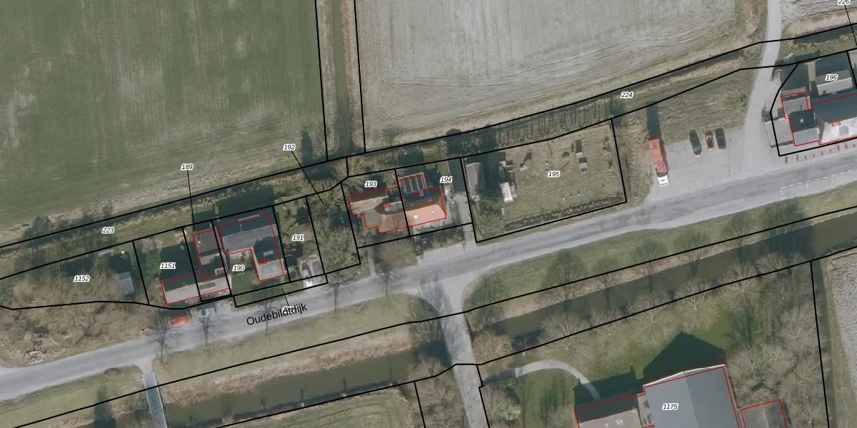 Gebruik de zoekbalk of klik op een perceel voor informatie over de adressen binnen dit perceel.