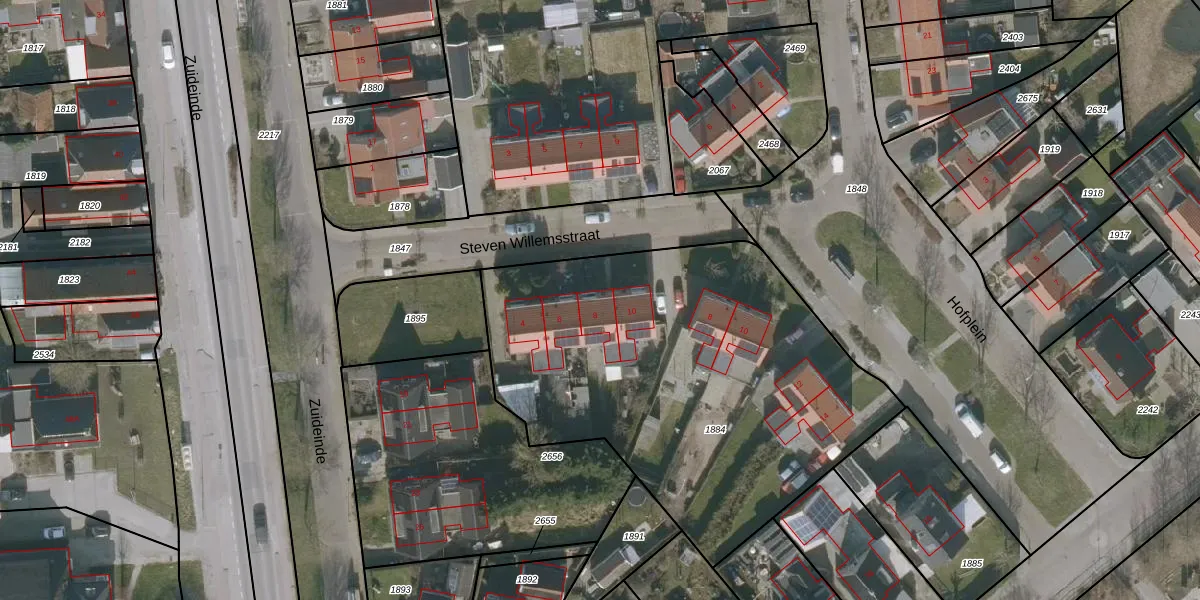 Het perceel waarop Steven Willemsstraat 8 staat heeft een oppervlakte van 2261 m². Dit is een zeer groot perceel. De perceeloppervlakte wordt geregistreerd door het Kadaster. Gedetailleerde informatie over de maten van dit perceel kunt u vinden in het rapport Kadastrale kaart met maatvoering van Steven Willemsstraat 8.