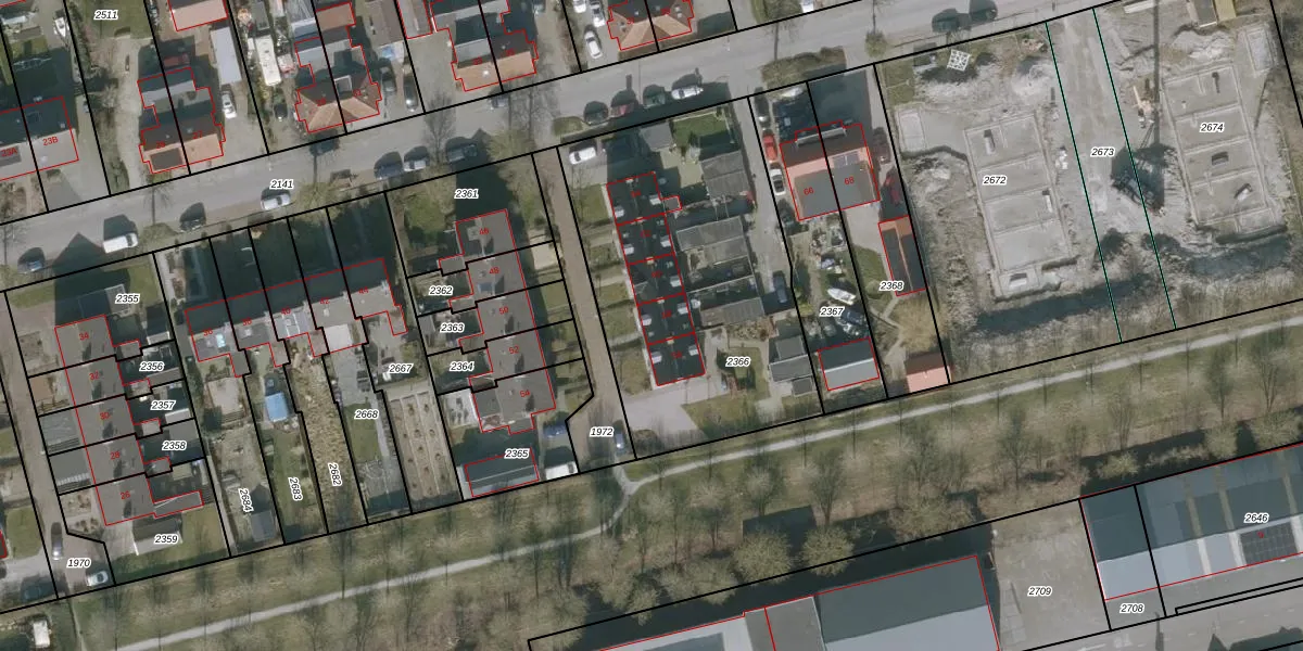 Het adres ligt op het perceel JCB00-A-2366, dat zich in de kadastrale gemeente Sint Jacobi Parochie bevindt. Het perceel is 1501 m² groot. Dat is kleiner dan de gemiddelde perceeloppervlakte in Sint Jacobi Parochie, dat op 1,0 ha ligt. Het grootste perceel in de kadastrale gemeente is 29,5 ha. Het kleinste perceel heeft een oppervlakte van 1 m². Er zijn 5 adressen aanwezig op het perceel. In de Basisregistratie Kadaster (BRK) werden de grenzen van het perceel geregistreerd op 21-12-2009.