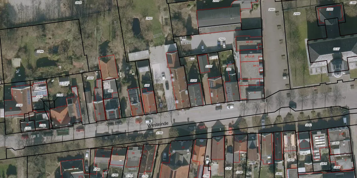 Het adres ligt op het perceel JCB00-A-2493, dat zich in de kadastrale gemeente Sint Jacobi Parochie bevindt. Het perceel is 1799 m² groot. Dat is kleiner dan de gemiddelde perceeloppervlakte in Sint Jacobi Parochie, dat op 1,0 ha ligt. Het grootste perceel in de kadastrale gemeente is 29,5 ha. Het kleinste perceel heeft een oppervlakte van 1 m². Er zijn geen andere adressen aanwezig op het perceel. De laatste wijziging in het de Basisregistratie Kadaster (BRK) was op 23-06-2008.