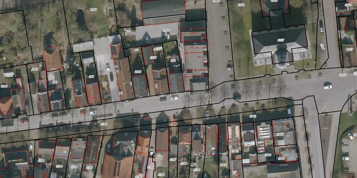 Gebruik de zoekbalk of klik op een perceel voor informatie over de adressen binnen dit perceel.