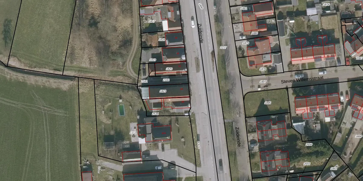 Gebruik de zoekbalk of klik op een perceel voor informatie over de adressen binnen dit perceel.