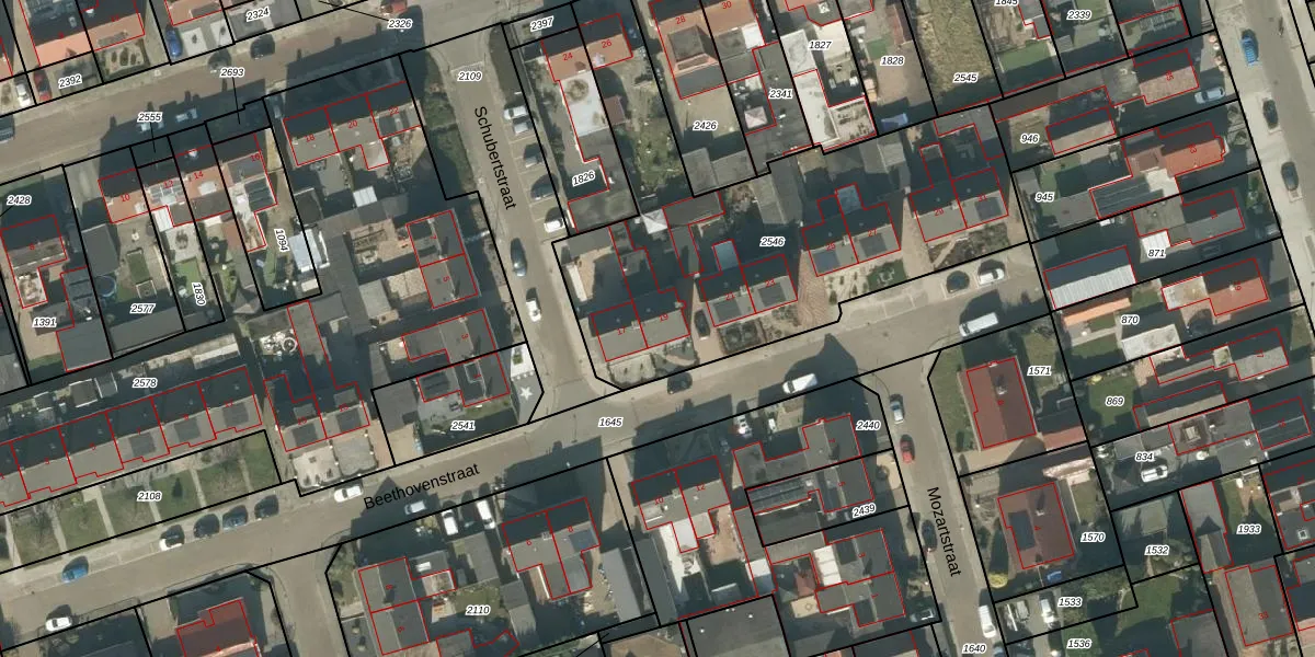 Het perceel waarop Beethovenstraat 19 staat heeft een oppervlakte van 1953 m². Dit is een zeer groot perceel. De perceeloppervlakte wordt geregistreerd door het Kadaster. Gedetailleerde informatie over de maten van dit perceel kunt u vinden in het rapport Kadastrale kaart met maatvoering van Beethovenstraat 19.
