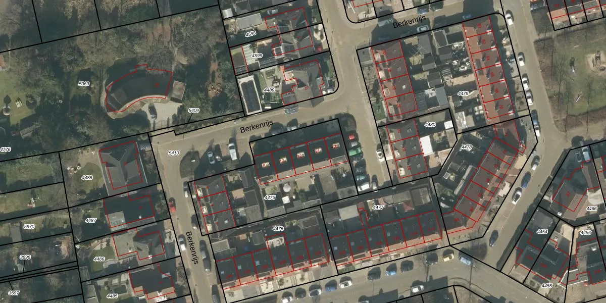 Berkenrijs 12 is gelegen op kadastraal perceel RPN00F4475. Deze kadastrale aanduiding is uniek en wordt gebruikt door het Kadaster om eigendomsrechten en andere zakelijke rechten vast te leggen. Het perceel maakt onderdeel uit van de kadastrale gemeente Rucphen.
