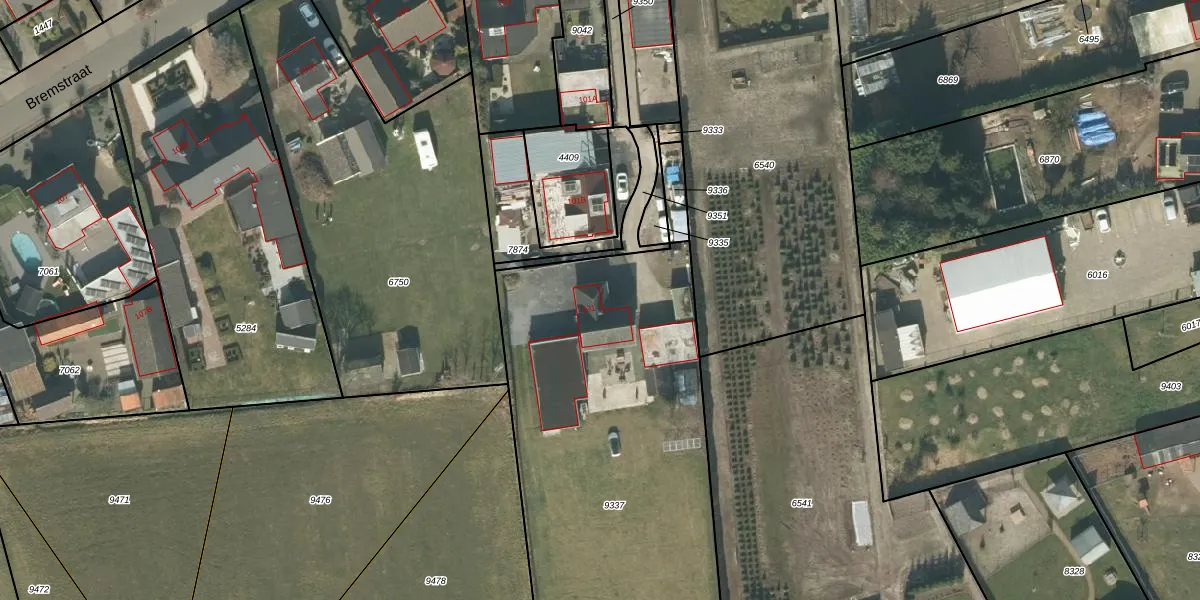 Het perceel waarop Bremstraat 101 staat heeft een oppervlakte van 2361 m². Dit is een zeer groot perceel. De perceeloppervlakte wordt geregistreerd door het Kadaster. Gedetailleerde informatie over de maten van dit perceel kunt u vinden in het rapport Kadastrale kaart met maatvoering van Bremstraat 101.