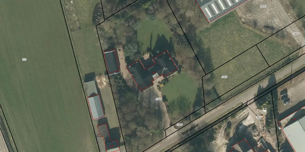 Het perceel waarop Bremstraat 160 staat heeft een oppervlakte van 4945 m². Dit is een zeer groot perceel. De perceeloppervlakte wordt geregistreerd door het Kadaster. Gedetailleerde informatie over de maten van dit perceel kunt u vinden in het rapport Kadastrale kaart met maatvoering van Bremstraat 160.