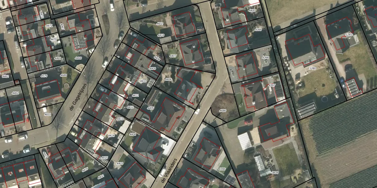 Gebruik de zoekbalk of klik op een perceel voor informatie over de adressen binnen dit perceel.
