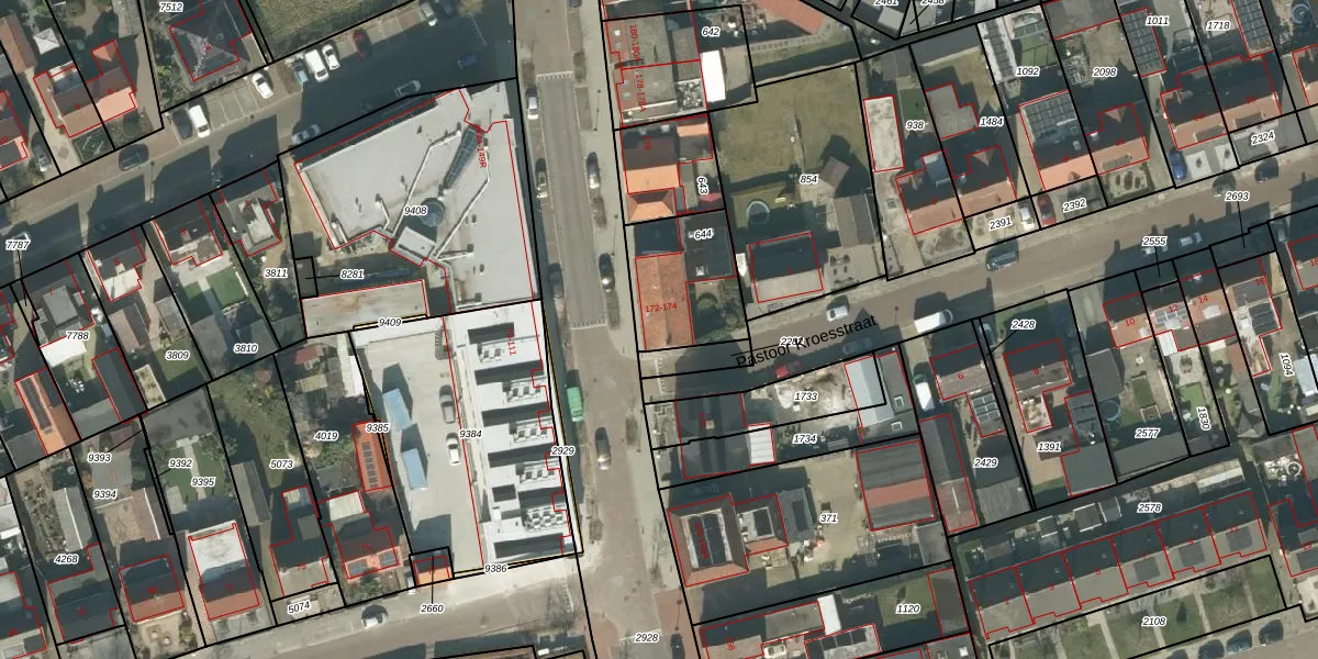 Dorpsstraat 172 is gelegen op kadastraal perceel RPN00M644. Deze kadastrale aanduiding is uniek en wordt gebruikt door het Kadaster om eigendomsrechten en andere zakelijke rechten vast te leggen. Het perceel maakt onderdeel uit van de kadastrale gemeente Rucphen.