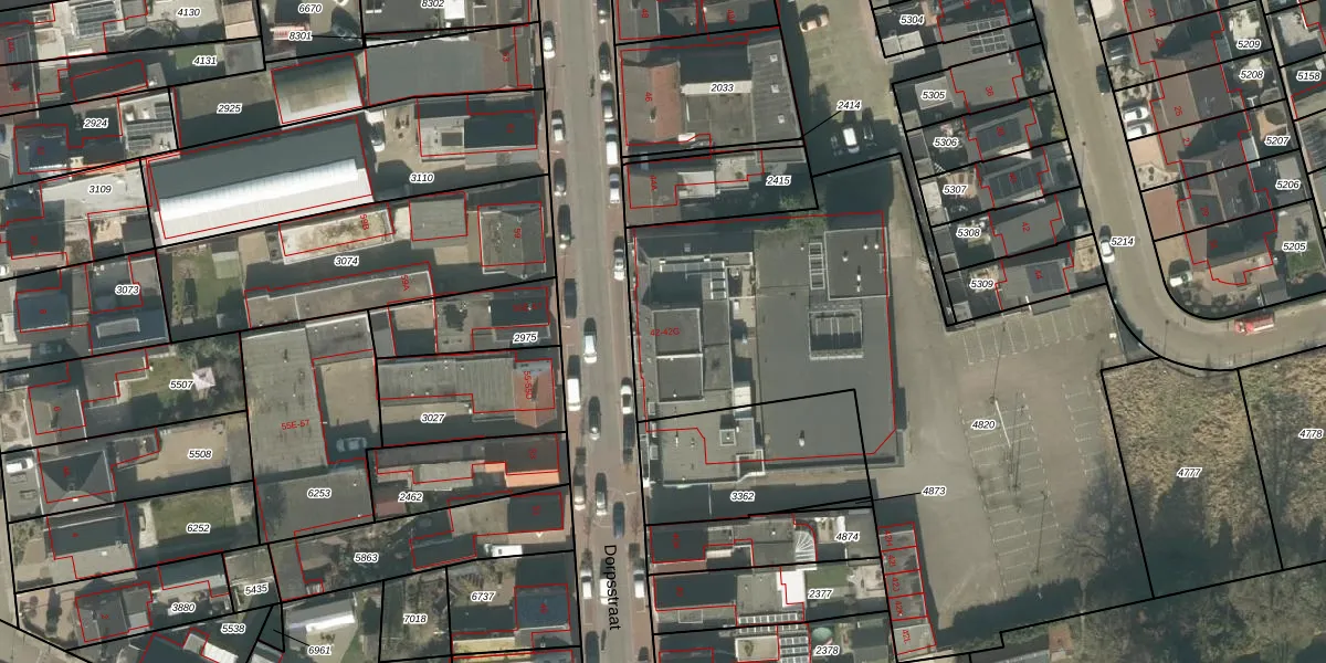 Het perceel waarop Dorpsstraat 42-E staat heeft een oppervlakte van 3172 m². Dit is een zeer groot perceel. De perceeloppervlakte wordt geregistreerd door het Kadaster. Gedetailleerde informatie over de maten van dit perceel kunt u vinden in het rapport Kadastrale kaart met maatvoering van Dorpsstraat 42-E.