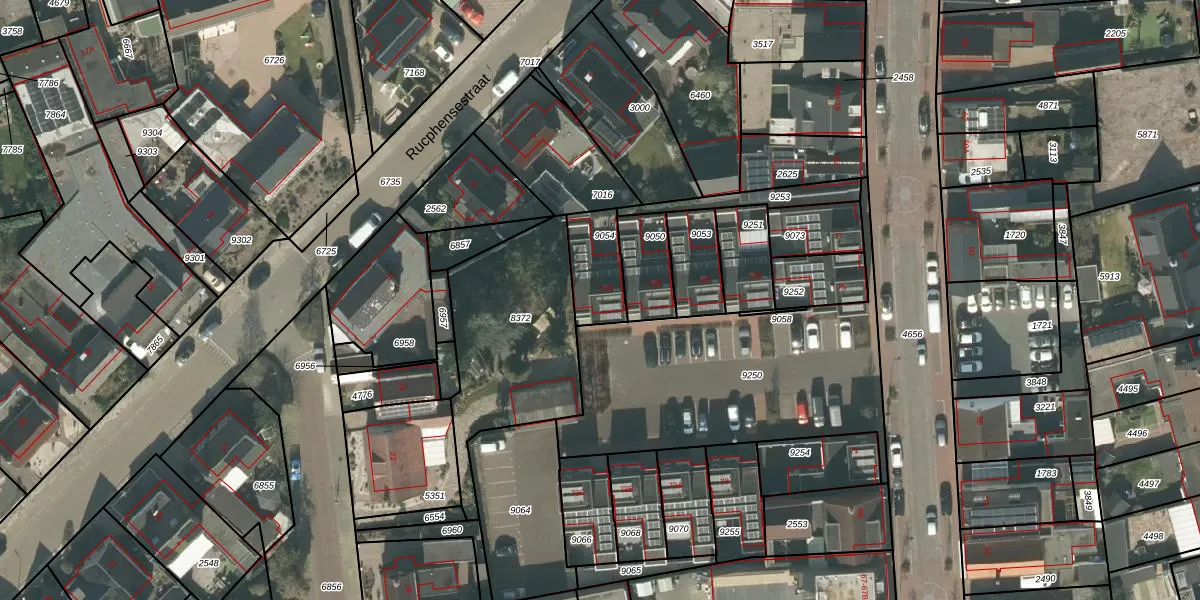 Het perceel waarop het adres ligt is RPN00-D-9054. De afkorting 'RPN00' staat voor kadastrale gemeente Rucphen. Het perceel is kleiner dan gemiddeld in Rucphen. Het perceel is 160 m² groot, terwijl het gemiddelde ligt op 4091,58 m². Het grootste perceel in de kadastrale gemeente is 43,3 ha. Het kleinste perceel heeft een oppervlakte van 0 m². Dit is het enige adres dat aanwezig is op het perceel. De laatste wijziging in het de Basisregistratie Kadaster (BRK) was op 08-04-2021.