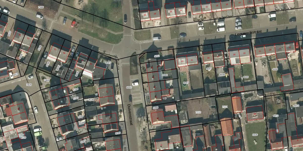 Duivenstraat 16 is gelegen op kadastraal perceel RPN00D8946. Deze kadastrale aanduiding is uniek en wordt gebruikt door het Kadaster om eigendomsrechten en andere zakelijke rechten vast te leggen. Het perceel maakt onderdeel uit van de kadastrale gemeente Rucphen.