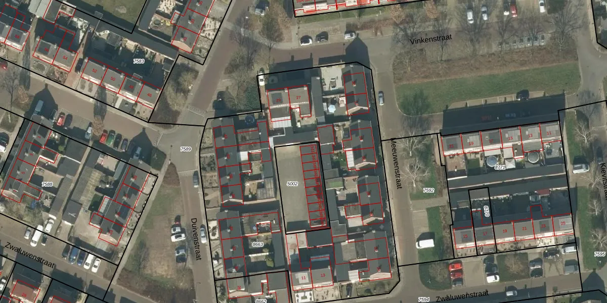 Het perceel waarop Duivenstraat 34-J staat heeft een oppervlakte van 463 m². Dit is een groot perceel. De perceeloppervlakte wordt geregistreerd door het Kadaster. Gedetailleerde informatie over de maten van dit perceel kunt u vinden in het rapport Kadastrale kaart met maatvoering van Duivenstraat 34-J.