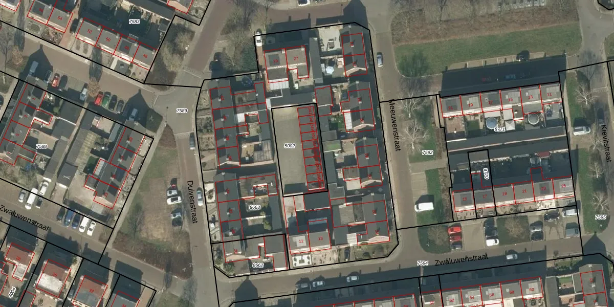 Het perceel waarop Duivenstraat 34-E staat heeft een oppervlakte van 463 m². Dit is een groot perceel. De perceeloppervlakte wordt geregistreerd door het Kadaster. Gedetailleerde informatie over de maten van dit perceel kunt u vinden in het rapport Kadastrale kaart met maatvoering van Duivenstraat 34-E.
