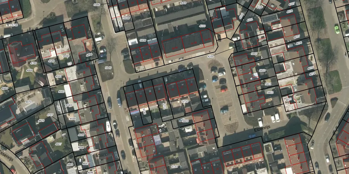 Elzenrijs 19 is gelegen op kadastraal perceel RPN00F5710. Deze kadastrale aanduiding is uniek en wordt gebruikt door het Kadaster om eigendomsrechten en andere zakelijke rechten vast te leggen. Het perceel maakt onderdeel uit van de kadastrale gemeente Rucphen.