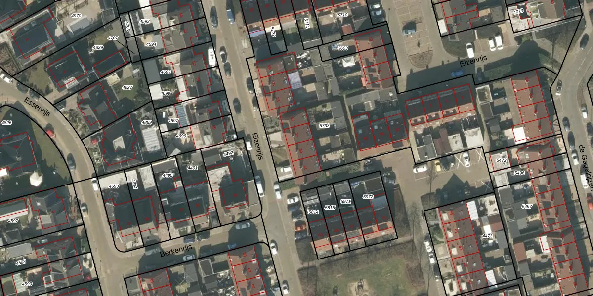 Elzenrijs 39 is gelegen op kadastraal perceel RPN00F5733. Deze kadastrale aanduiding is uniek en wordt gebruikt door het Kadaster om eigendomsrechten en andere zakelijke rechten vast te leggen. Het perceel maakt onderdeel uit van de kadastrale gemeente Rucphen.