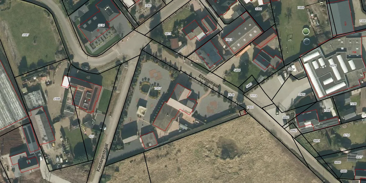 Het perceel waarop Elzenstraat 7 staat heeft een oppervlakte van 2260 m². Dit is een zeer groot perceel. De perceeloppervlakte wordt geregistreerd door het Kadaster. Gedetailleerde informatie over de maten van dit perceel kunt u vinden in het rapport Kadastrale kaart met maatvoering van Elzenstraat 7.
