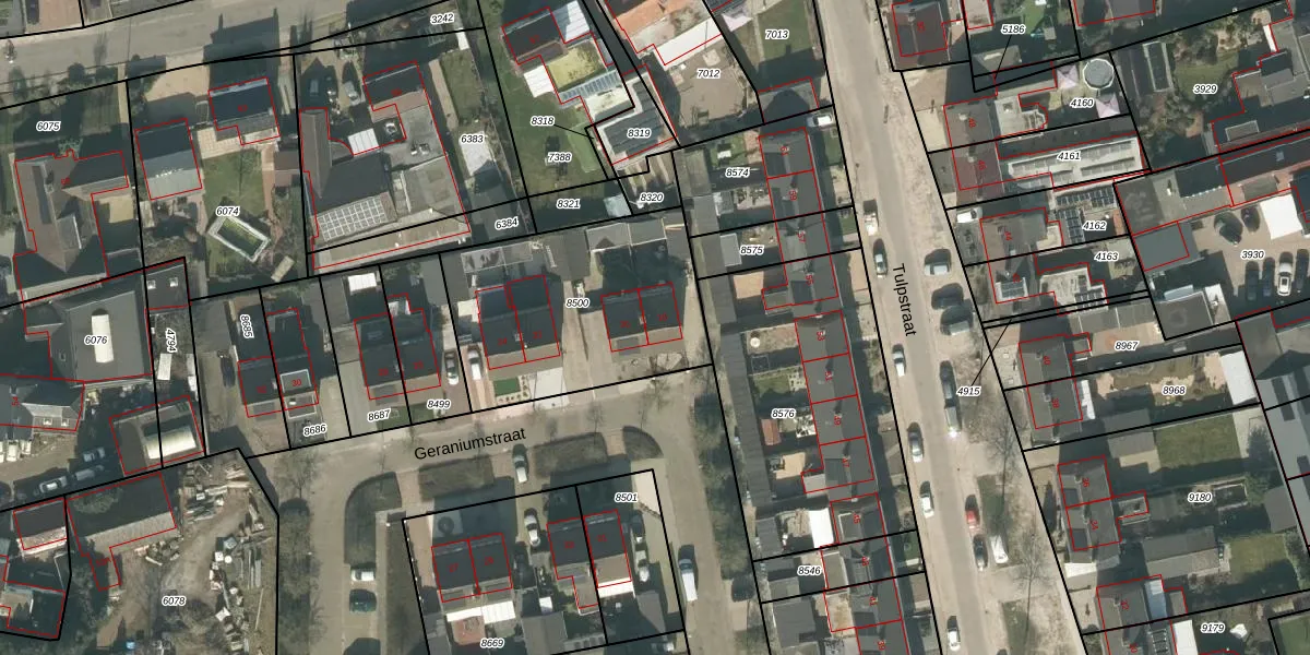Het perceel waarop Geraniumstraat 18 staat heeft een oppervlakte van 942 m². Dit is een groot perceel. De perceeloppervlakte wordt geregistreerd door het Kadaster. Gedetailleerde informatie over de maten van dit perceel kunt u vinden in het rapport Kadastrale kaart met maatvoering van Geraniumstraat 18.