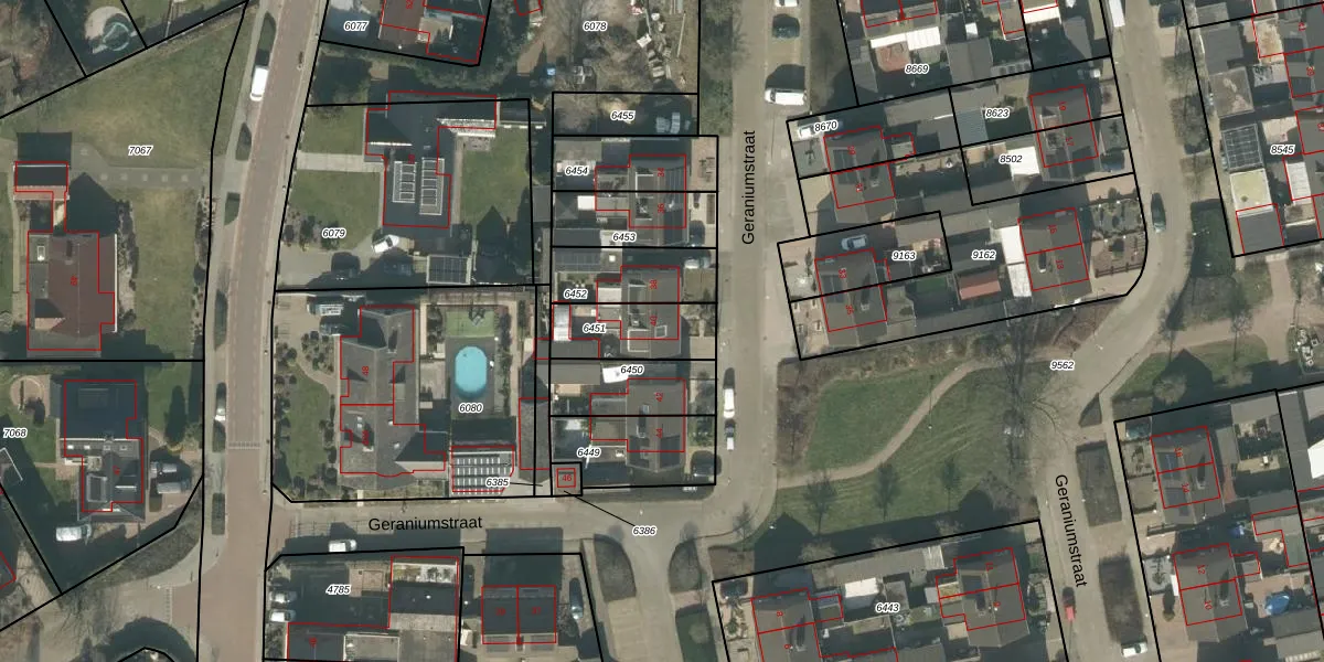 Het perceel waarop Geraniumstraat 40 staat heeft een oppervlakte van 213 m². Dit is een middelgroot perceel. De perceeloppervlakte wordt geregistreerd door het Kadaster. Gedetailleerde informatie over de maten van dit perceel kunt u vinden in het rapport Kadastrale kaart met maatvoering van Geraniumstraat 40.