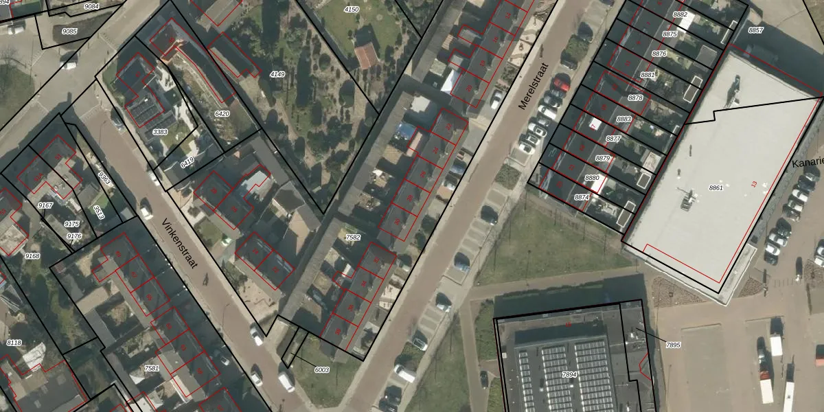 Het perceel waarop Merelstraat 28 staat heeft een oppervlakte van 3468 m². Dit is een zeer groot perceel. De perceeloppervlakte wordt geregistreerd door het Kadaster. Gedetailleerde informatie over de maten van dit perceel kunt u vinden in het rapport Kadastrale kaart met maatvoering van Merelstraat 28.