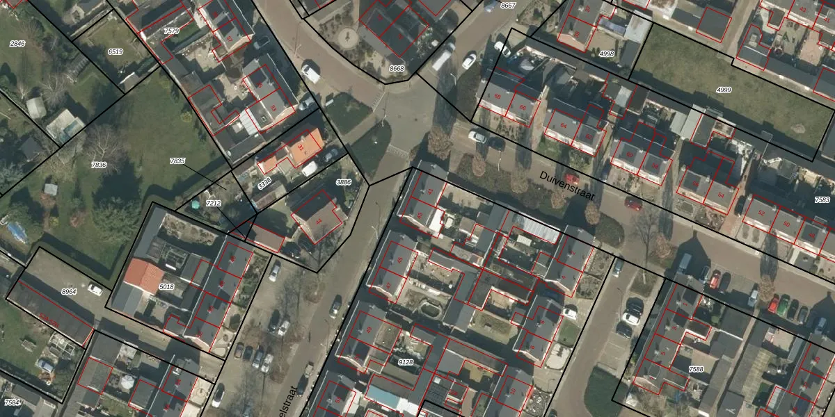 Het perceel waarop Merelstraat 43 staat heeft een oppervlakte van 3204 m². Dit is een zeer groot perceel. De perceeloppervlakte wordt geregistreerd door het Kadaster. Gedetailleerde informatie over de maten van dit perceel kunt u vinden in het rapport Kadastrale kaart met maatvoering van Merelstraat 43.