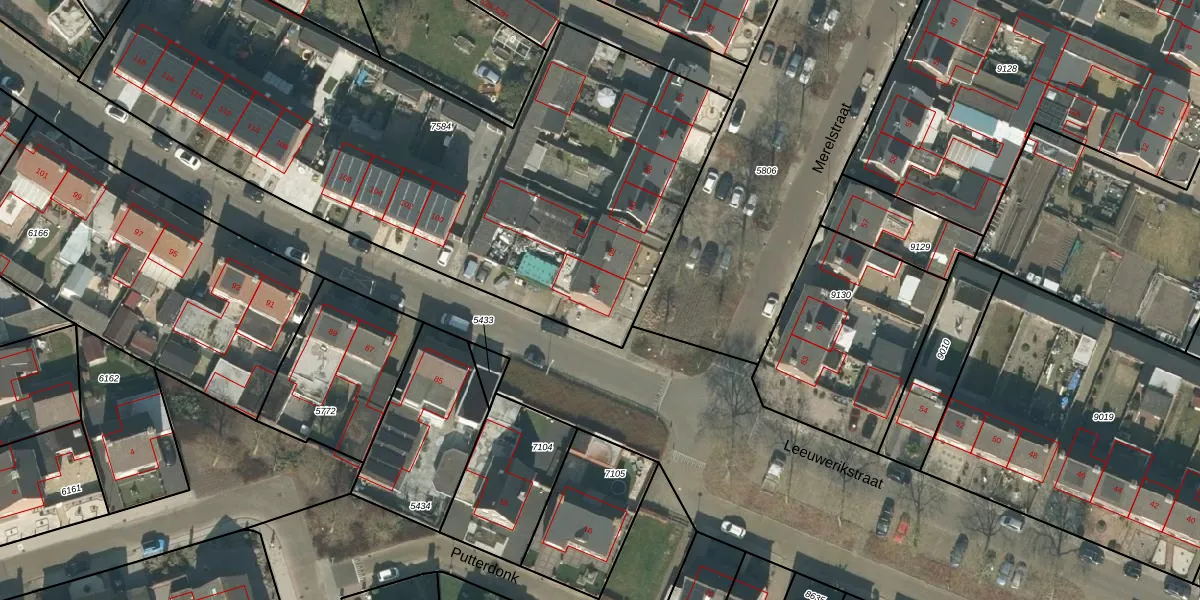 Het perceel waarop Merelstraat 64 staat heeft een oppervlakte van 3317 m². Dit is een zeer groot perceel. De perceeloppervlakte wordt geregistreerd door het Kadaster. Gedetailleerde informatie over de maten van dit perceel kunt u vinden in het rapport Kadastrale kaart met maatvoering van Merelstraat 64.