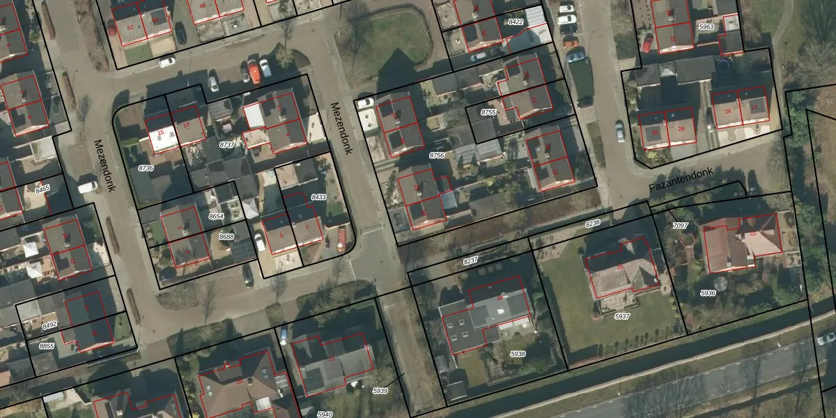 Het perceel waarop Mezendonk 26 staat heeft een oppervlakte van 1577 m². Dit is een zeer groot perceel. De perceeloppervlakte wordt geregistreerd door het Kadaster. Gedetailleerde informatie over de maten van dit perceel kunt u vinden in het rapport Kadastrale kaart met maatvoering van Mezendonk 26.